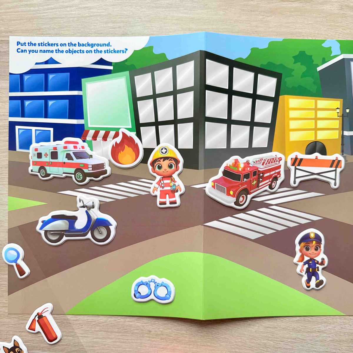 - Fiecare set include un fundal imprimat pe ambele părți, cu două scene viu colorate, și zeci de stickere, asigurând momente captivante de creativitate și joacă.