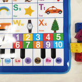 Posterul conține 26 de butoane cu literele alfabetului de bază și numerele de la 1 la 10.