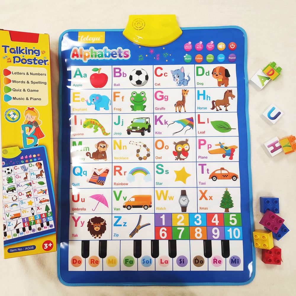 • Study – Învățare activă prin apăsarea literelor, cifrelor sau imaginilor (exemplu: copilul apasă pe „E”, iar posterul răspunde „E [iː]”; copilul apasă pe broască, iar posterul spune „frog [frɒg] – broască”).